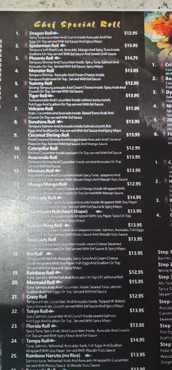 Smoked salmon,krab,cream cheese,avocado,mango inside deep fried fish eggs,scallion on top w.eel sauce.spicy mayo